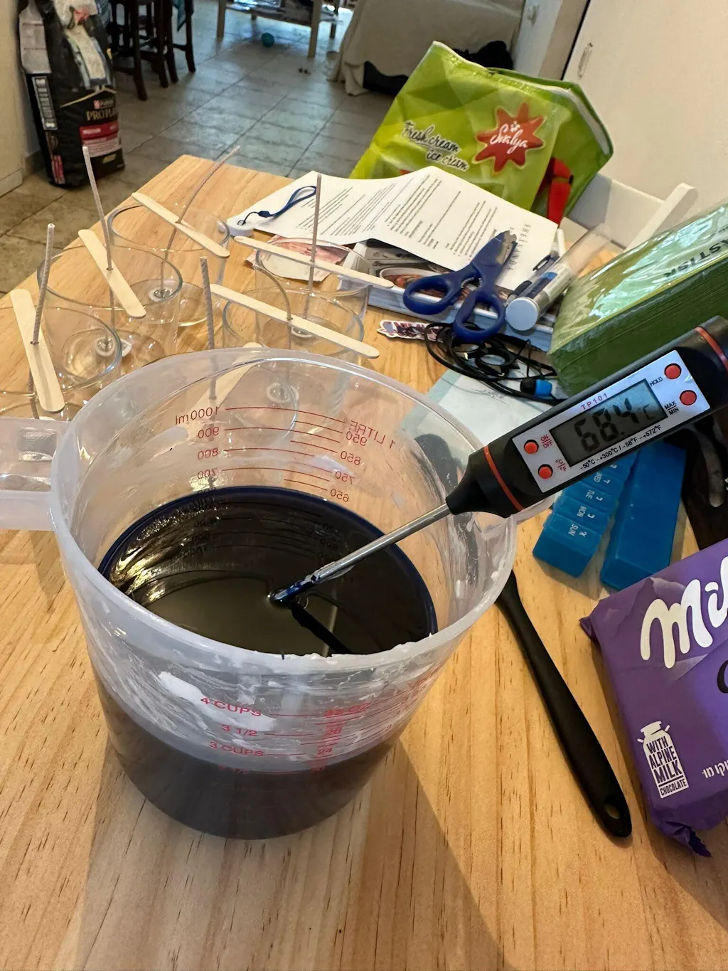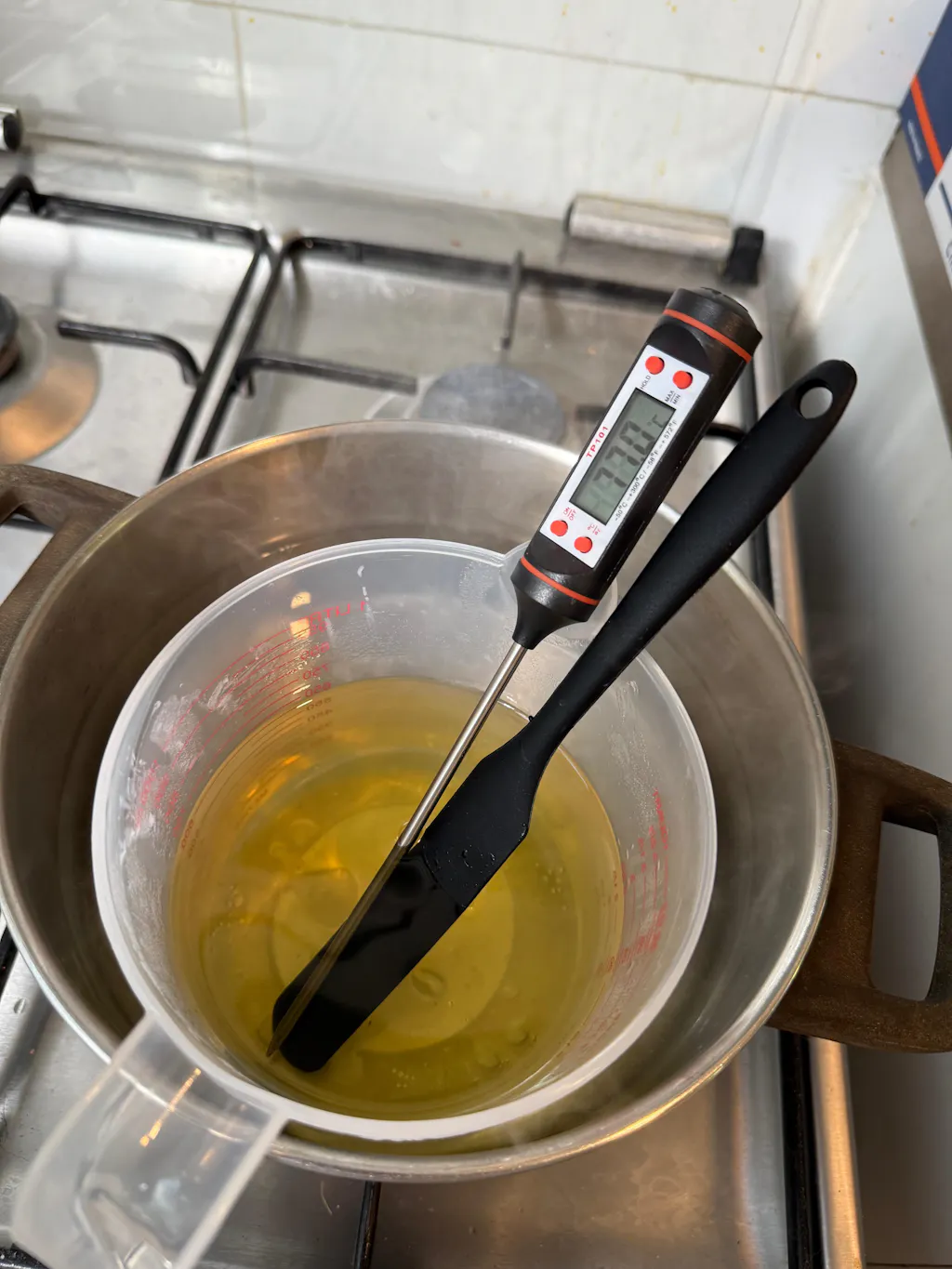 3. مقياس حرارة رقمي - لتعرف متى تضيف العطر ومتى تصب الشمع في البرطمان.