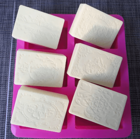 Силиконовая форма для изготовления 6 украшенных квадратных мыл.